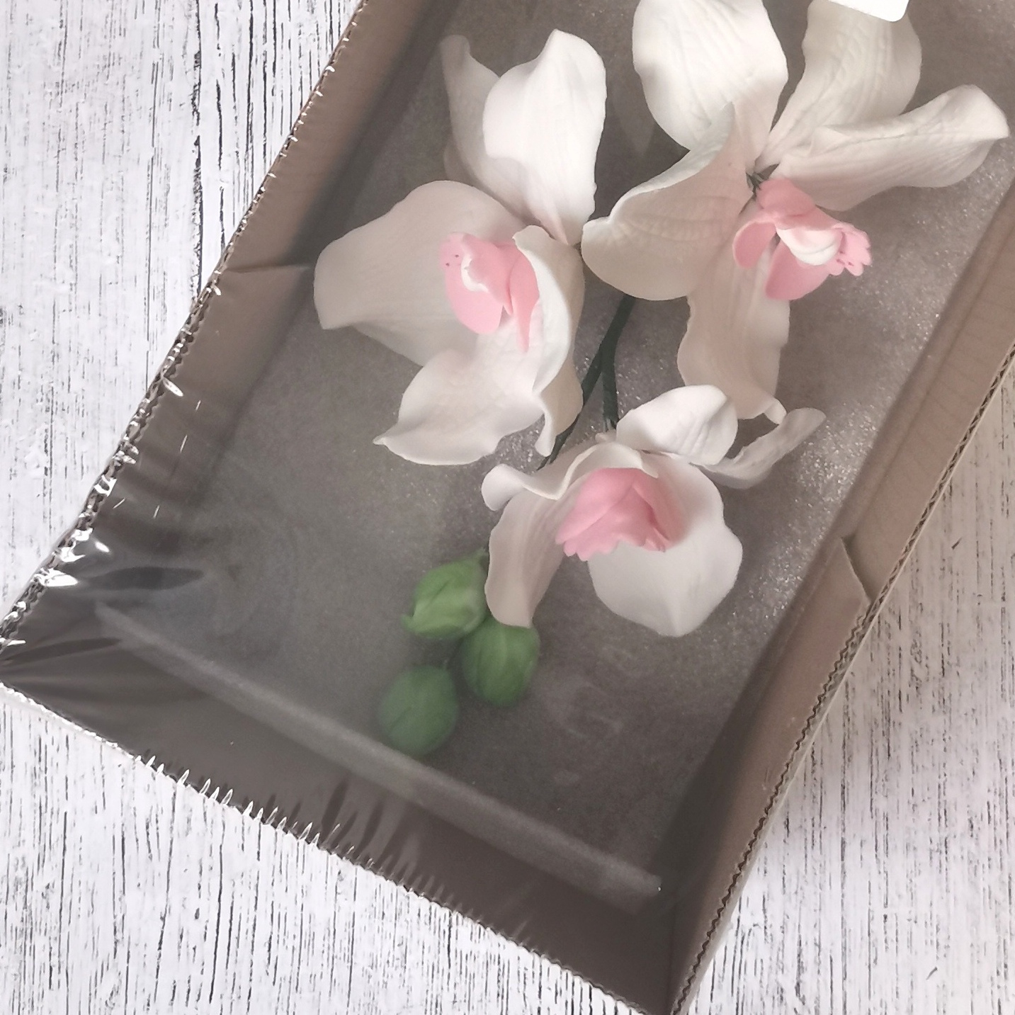 Ветка сахарная "Орхидея бело-розовая" 20см
