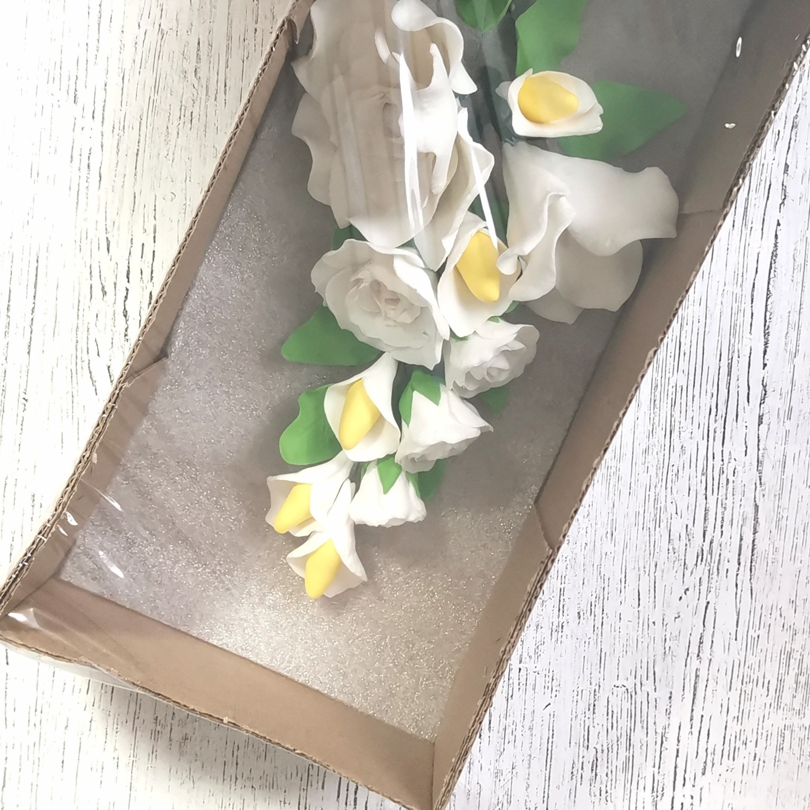 Сахарная ветка "Роза белая с жасмином" 20см
